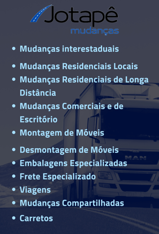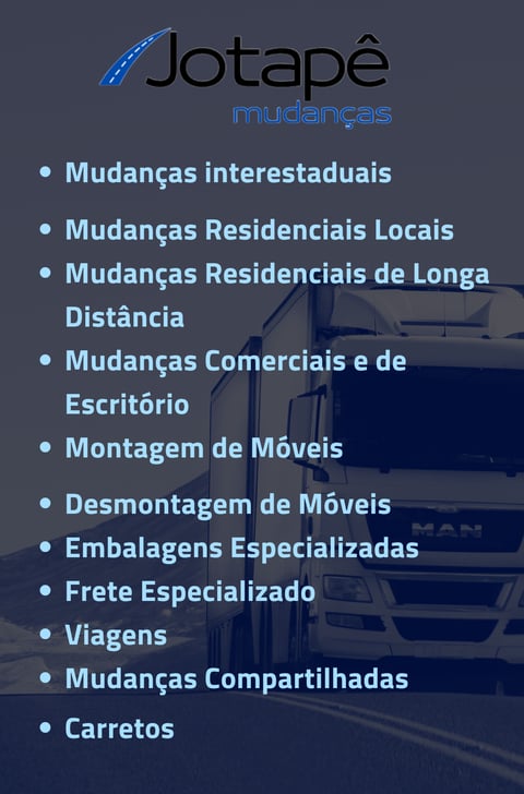 Aqui na Jotapê Mudanças, a pontualidade e a qualidade no atendimento são nossa prioridade. Queremos que sua mudança seja um momento tranquilo e sem estresse, com a certeza de que seus bens estão em boas mãos. Nosso compromisso é com a sua satisfação, seja em mudanças pequenas ou grandes, e no transporte de qualquer item que você precise.
